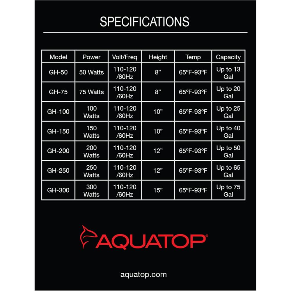 Maintain constant and stable temperatures for your aquatic creatures to thrive with AquaTop's GH-75W aquarium heater.