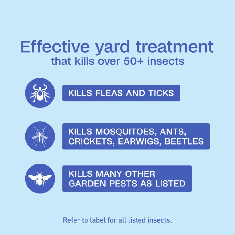 EFFECTIVE FLEA & TICK FORMULA: Kills fleas and ticks including deer ticks that can transmit Lyme disease. Controls over 50 listed insects including beetles, mosquitoes, fire ants and more.