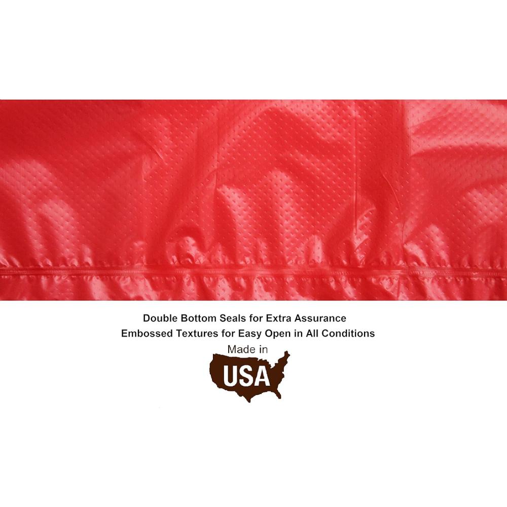 Patented nylon dispenser attaches to any leashes. Each dispenser comes with 2 rolls. Poop bags measure 9 x 15 inches for easier tying, double bottom seals, embossed texture for easy opening, and bags are pleasantly scented.