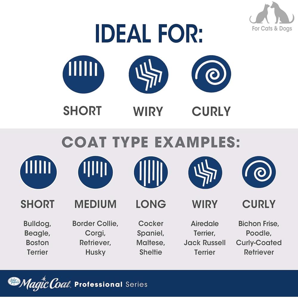 Ideal for short, curly, and wiry coats. Also great for grooming cats!