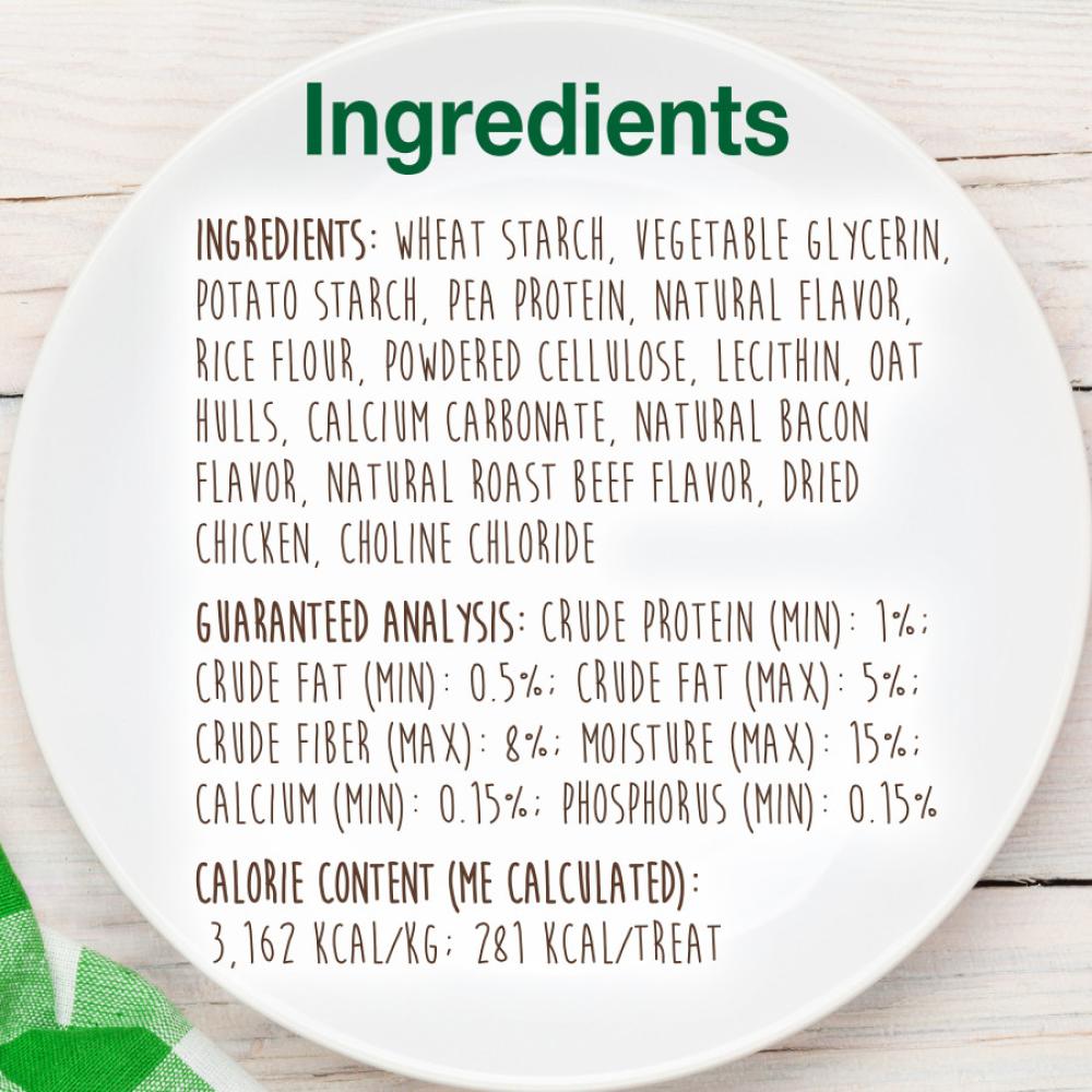 Bacon makes everything better! Our USA-made Healthy Edibles Bacon Dog Treats are packed with scrumptious flavor that dogs just can't resist. Crafted with wellness in mind, these healthy dog treats are made with natural ingredients and contain added vitamins and minerals. The longer-lasting, highly digestible formula satisfies dogs who love to chew and do not contain any added salt, sugar and artificial preservatives. There is a size for every dog, so indulge your dog's craving for bacon no matter how big or small. Whether you're treating or training, our chew treats will let your pooch know they've been a good dog!