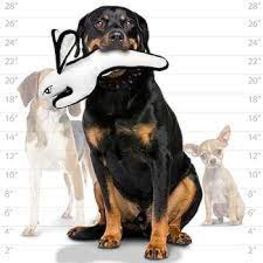 This toy is available in 2 sizes: Regular (for medium to large dogs) and Junior (for small dogs).