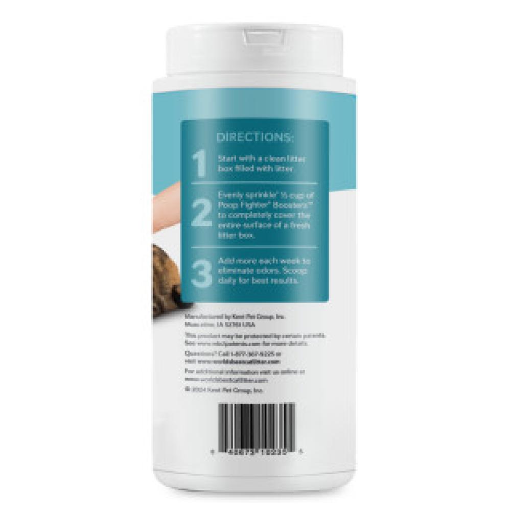World’s Best Cat Litter Poop Fighter Boosters litter additive utilizes Botanical Blocker technology to knock out odors from the litter box, in the same way that we do with our Poop Fighter® litter.
